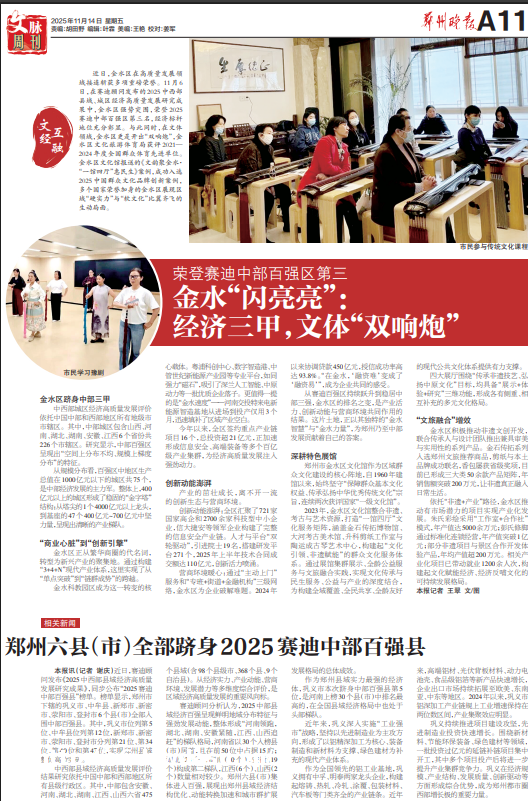 金水“闪亮亮”: 经济三甲,文体“双响炮”