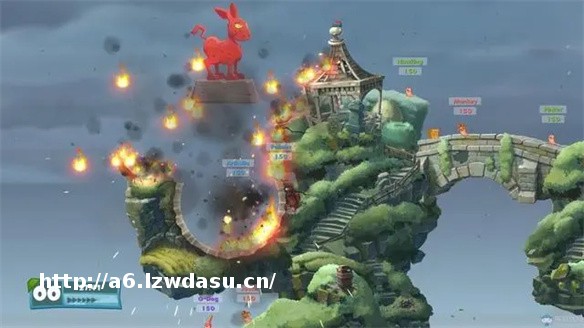 本作是一款2D卡通风格的回合制策略类游戏,玩家将控制虫子在多变的地形中使用各种武器进行战斗。当然武器发射出去都是呈抛物线的形式,因此不仅仅考验玩家的预判能力,炮火还会对游戏的场景本身构成破坏,进而改变地形的格*。