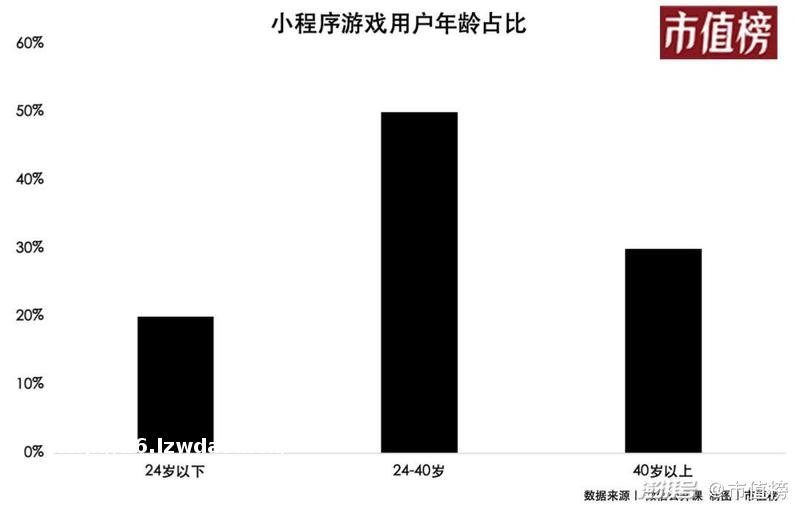 小程序游戏用户的男女比例和年龄,小游戏玩家男女用户比例为6:4,24岁以下、24-40岁、40岁以上人群,比例是2:5:3,40岁以上人群占比30%,