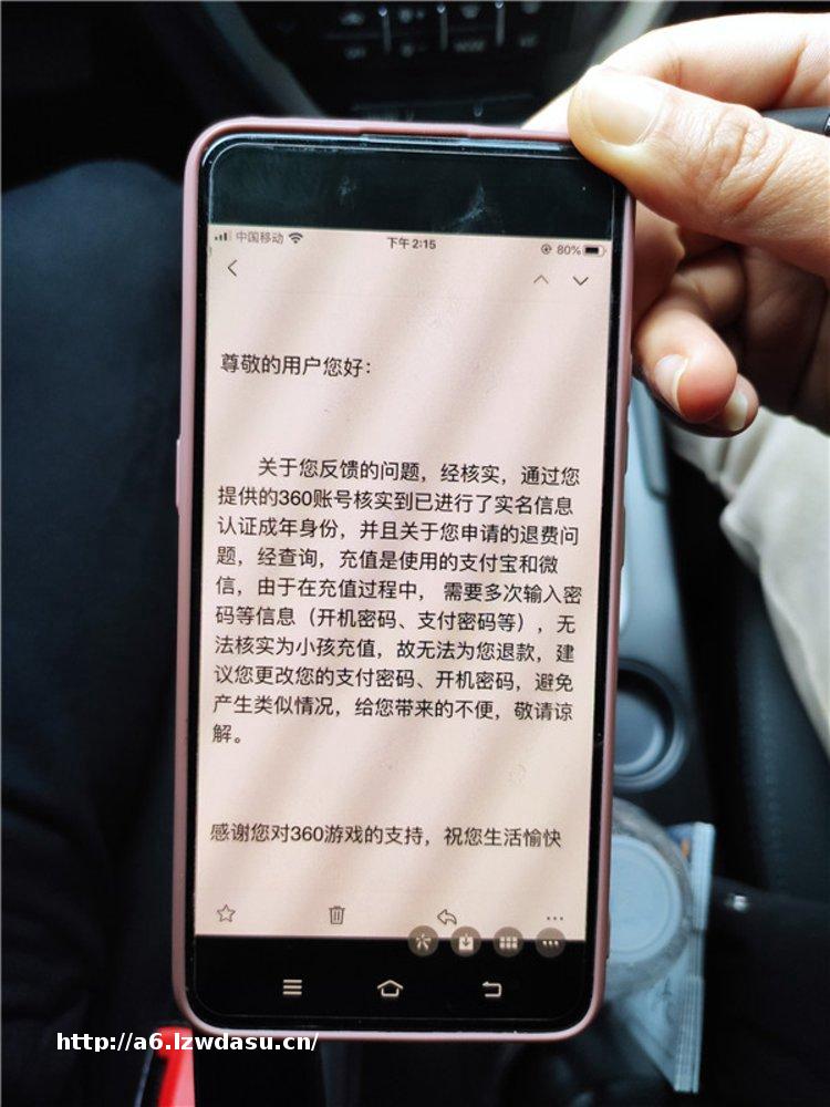 3个工作日后,戴先生收到了360游戏的**回复:“经核实,您提供的360账号已进行了实名信息**成年身份,并且在充值过程中,需要多次输入密码等信息(开机密码、支付密码等),无法核实为小孩充值,故无法为您退款。”
