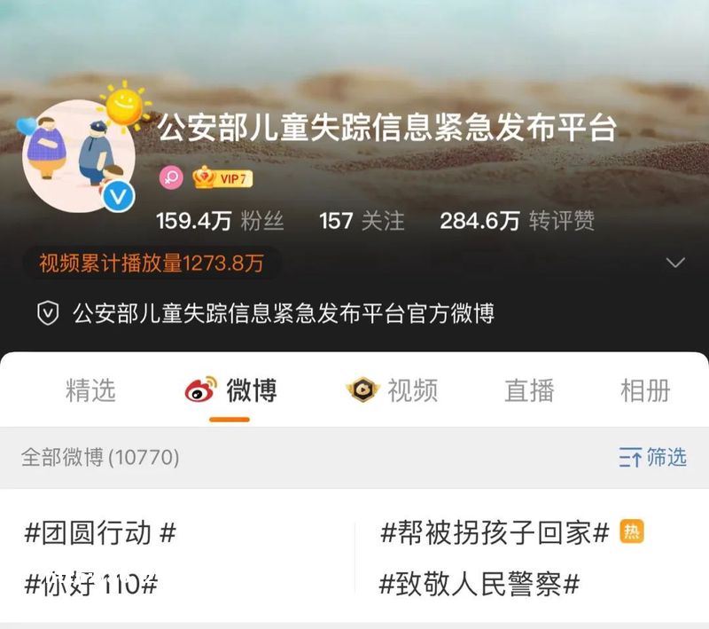 “团圆”系统是**部为适应“互联网+打拐”的时代要求而开发,一旦有儿童失踪信息发布,该平台可协助******时间将儿童失踪信息通过新媒体和移动应用终端,推送至失踪地周边一定范围内,让更多群众准确获取相关信息,及时提供线索,协助****尽快破案。