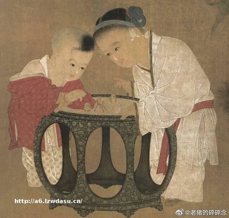 在绘制的《秋庭戏婴图》,一对弟正趴在圆墩上玩“推枣磨”的小游戏,让我们看到了普通小孩已经会自己玩具。