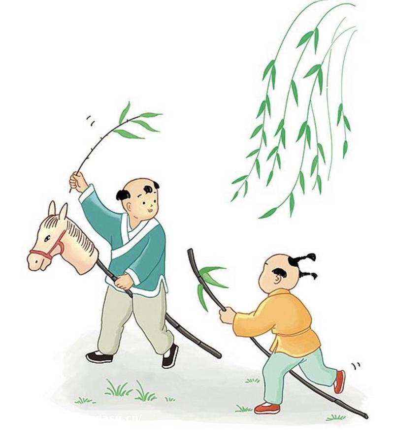竹马顾名思义,就是一根杆子,一端有马头模型,孩子跨立在杆子上面,假装在骑马。