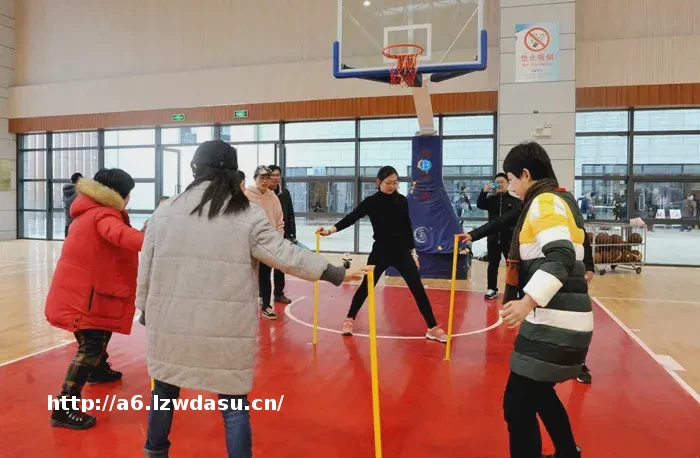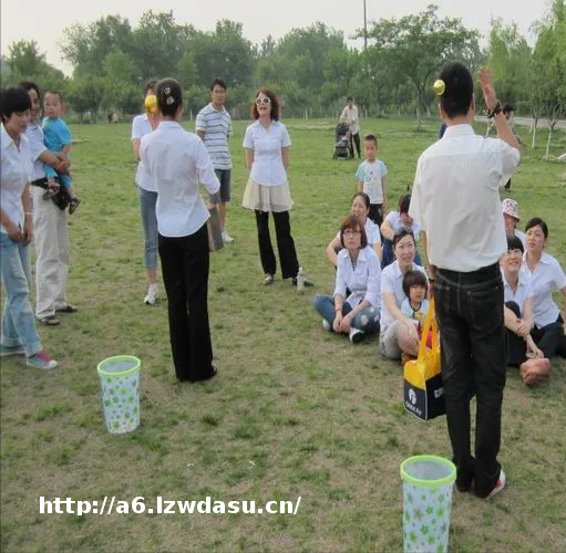 游戏玩法:一名队员面向某一个方向站好,目视前方不能回头。计时开始,名队员向身后扔球,其他队员指挥他如何调整投掷的力量和方向才能进球,用时最短的小组获胜。