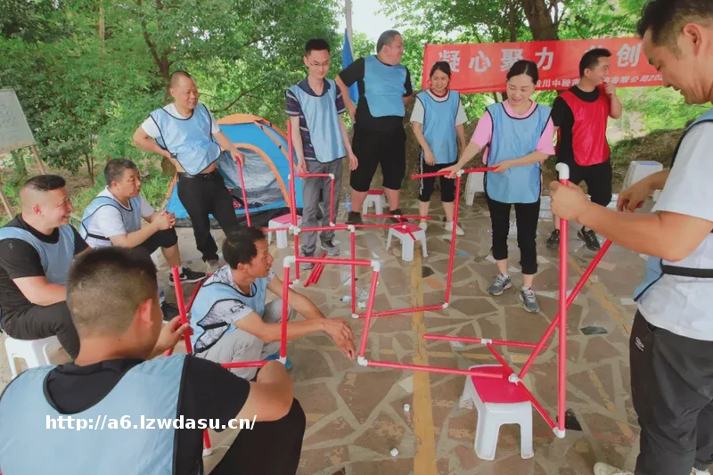 游戏玩法:在雷区中间有一处水源,你要在仅用一根绳子,不接触地面的情况下取到全体队员的救命水,想一想可能吗?团队的智慧可以把它变成事实。