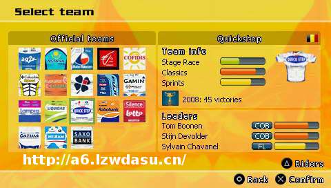 PSP版《职业自行车队经理 2009》(Pro Cycling Manager Saison 2009)将是一款模拟经营类游戏。玩家将可以组建自己的车队,进行环法比赛。在新作中将增加一些**变化,比如加入循环车道等。而像许多经营策略一样,《职业自行车队经理 2009》是一个着重以管理团队为基础的经营游戏。玩家在选择一个车队的经理或指导在选拔队员的时候,就应该明确个人的分工:正确选择每个队伍有可能拿成绩的领骑(leader),而剩下的是勤务(domestique)兼护航则有电脑担当。