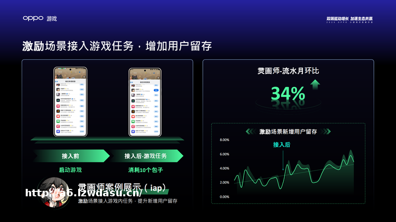 解决技术门槛后,OPPO 游戏在运营端进一步挖掘用户价值。通过场景能力升级,直接带动留存提升。小游戏《灵画师》接入此功能后,激励场景的新增用户留存提升****;