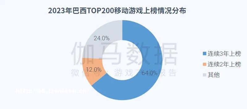 2023年,巴西移动游戏流水***200榜单中,76%的产品连续上榜,其中***30的游戏均连续三年上榜。随着头部产品流水占比进一步下滑,市场整体流水分布更趋平缓。从巴西移动游戏流水来看,巴西移动游戏市场头部产品格*稳定,但流水占比逐年降低。