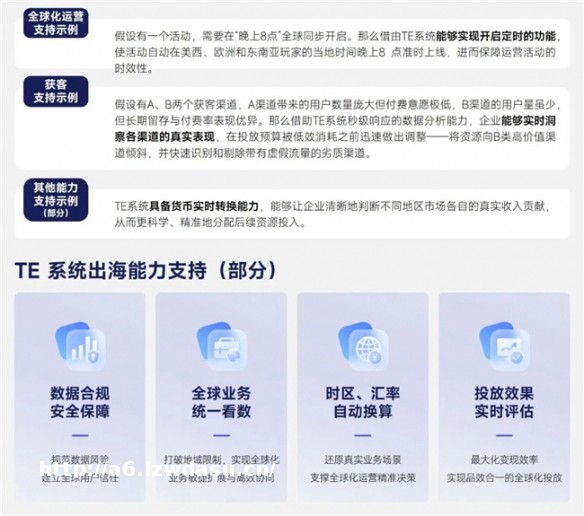 如前所述,更多高品质游戏呈现“全球通吃”的特征,虽然能较大程度带动流水增长,但对企业同时布*各海外市场的能力提出较高要求,有望带来“事半功倍”的出海效果。TE系统拥有全球多集群架构,自动满足GDPR等合规要求,从源头上规避法律风险;运营层面,TE系统可以对时区、汇率、语言进行实时转换,确保所有运营活动都基于玩家本地时间生效,进一步支持企业全球化运营;获客层面,从而更精准地评估投放渠道价值,在**获客的同时降本增效。