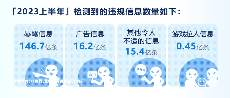 2023年上半年,腾讯游戏安全检测到的辱骂类信息达146.7亿条,辱骂信息是游戏中最容易出现的违规内容。
