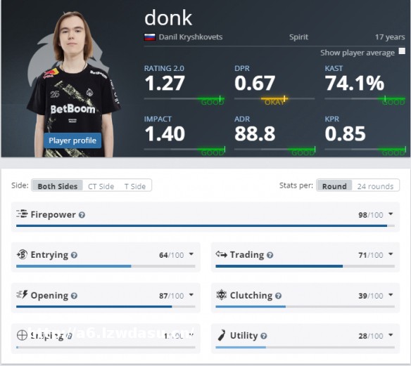 除了KAST略低一点点,而且donk打的地图数更多,