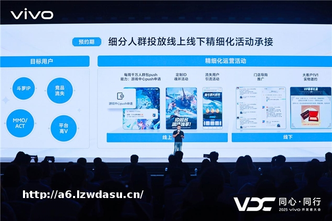 围绕游戏产品的不同生命周期,vivo提供不同的运营支持。平台商务与运营团队会深度介入,前期沟通定位痛点、调优预约素材,帮助开发者分层运营,并优化全链路转化效率,助力新游破*。针对用户回流,有效触达回流老用户,唤醒玩家游戏记忆,延长游戏生命周期。