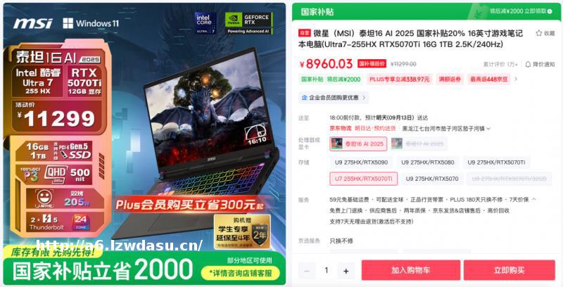 这款游戏本补贴后到手价仅8299元,非常值得冲。