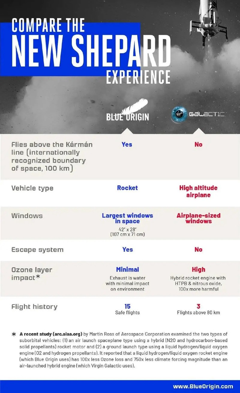除了前面提到的飞行高度外,“新谢泼德”号还有太空中**的窗户、逃生系统、对臭氧层**限度的损害,以及历史上多达15次的安全飞行经历。相比之下,只有普通飞机窗户、没法逃生、对臭氧层百倍伤害、80km以上的飞行一共才3次的“团结号”,着实差点儿意思。