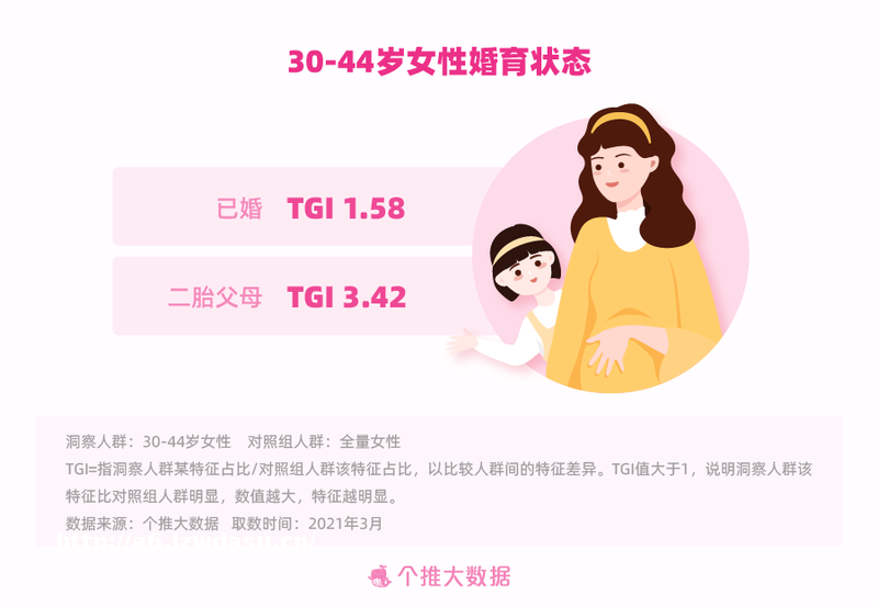 近年来,围绕“30+”女题材的综艺及**剧爆款频出,屏幕中,30+姐姐们撕掉标签、无惧年龄,活出了大家憧憬的样子。但明星光环对普通人的参照有限。现实生活中,30+女是什么样的呢?在这个3.8节,从婚育状态、消费特征、兴趣偏好、媒体表现等丰富维度,立体还原了“姐姐们”的群体画像。
