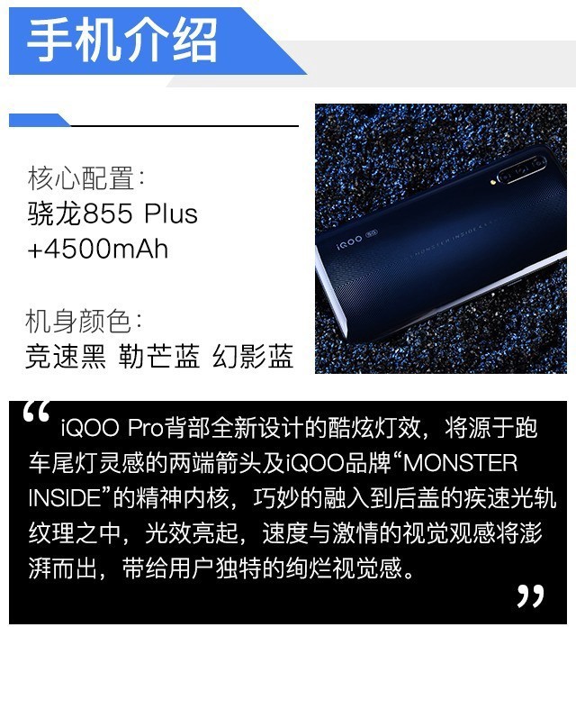 背部**光轨聚合的光带延续了iQOO家族一贯字样“MONSTER INSIDE”,我大概猜测意为——芯如猛兽。iQOO Pro这个猛兽的表现到底如何,在*能部分我会细讲。