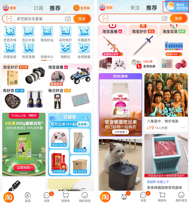 夜上线前(左)和上线后(右)