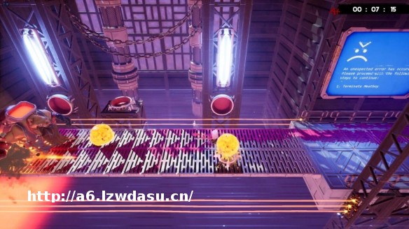 开*前后共有四个平台供我们站立,随着箭头提示,四个平台依次会有触手下砸,必须利用间隙跳跃躲避。随后便是天降垃圾球,找到空地躲开。