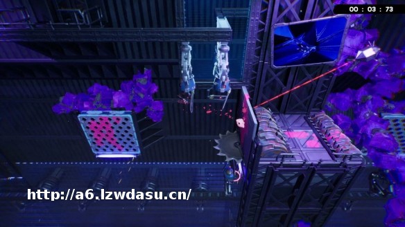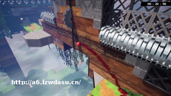 另外关卡里的*气、尖刺、激光、齿轮等等障碍物,摆放得也很有讲究。以 3-8 关为例,开*就能看到左右两边的板子会下砸,因此要找时机穿行,然后前方又有激光旋转挡路,扒墙等 timing 还要注意小跳,跳大了上方齿轮也会要你命,紧接着还有斜向跳跃考验距离把控。