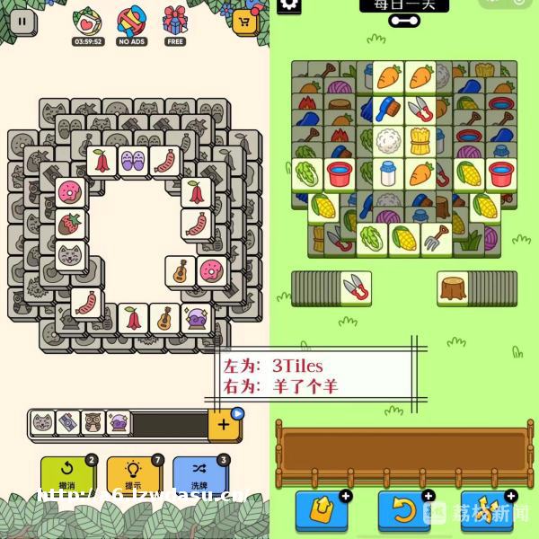 有网友发现,《羊了个羊》涉嫌抄袭一款国外游戏公司2020年开发的游戏《3 Tiles》。它们的玩法几乎一模一样,界面布*、道具也有许多相似之处: