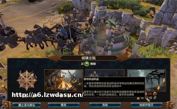 玩家在攻破城市后,可以选择劫掠并毁灭。选择该选项后除了会立刻获得少量战利品外,还会生成一支携带战利品的**。玩家需要让这支劫掠队回到己方城镇,才能获得这笔战利品奖励。