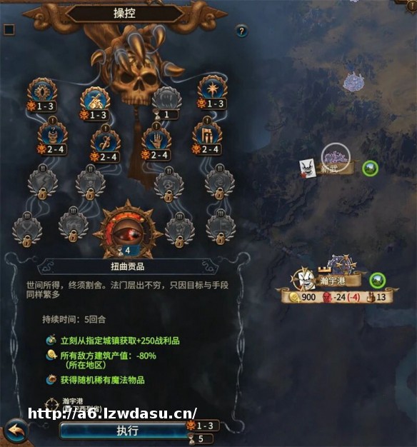萨尔的另一机制是“操控”,玩家可以通过这一特殊界面,执行各种战略操作,诸如禁用某一派系的**功能,立即在某座城市的城墙上打开缺口等。玩家能执行的战略操作也会提升,最多可达16种。