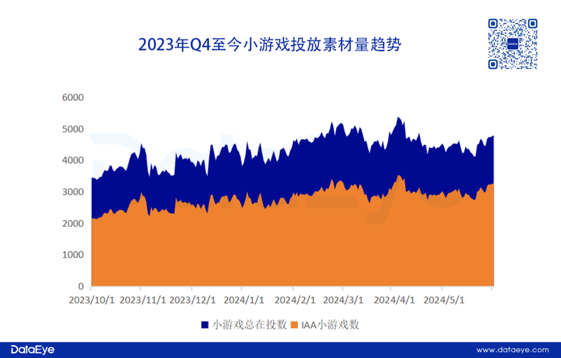另外,自23年Q4开始,IAA小游戏投放在投游戏数呈现持续增长,并主导整个小游戏市场在投游戏数情况。今年以来,IAA小游戏参投数量占比大盘的65%。