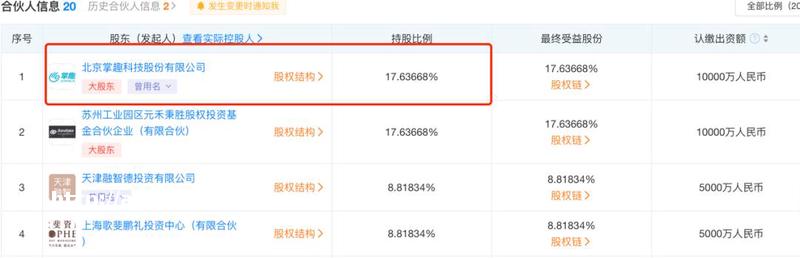 其中,掌趣科技是南山资本的重要出资人。天眼查显示,在南山资本的股东列表中,掌趣科技持股17.63%,是南山资本的**股东之一。
