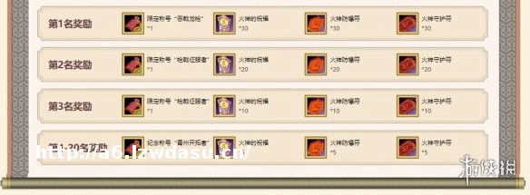 新服开启后,将开放军团贡献排名榜单,即可提高军团排名,榜单上的军团排名会于每日12:00更新,活动截止时的排名为最终排名。最终排名前二十的军团,军团长将获得一份专属荣耀奖励,奖励包含三火、限定稀有称号【枪戟征服者】等珍稀道具。战鼓起,旌旗扬,快来捍卫自己军团的荣耀,夺取这一份殊荣吧!