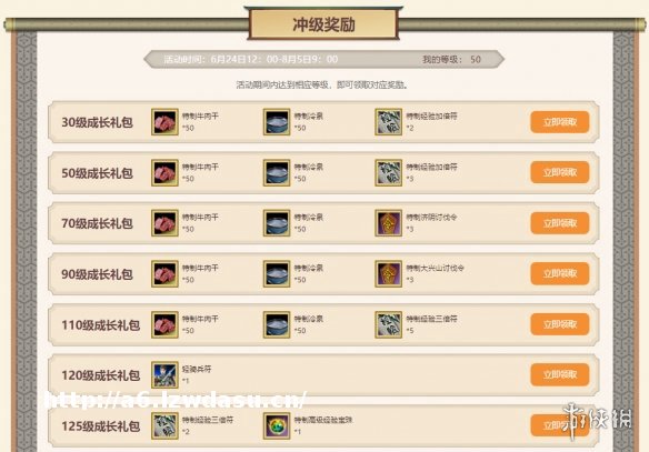 玩家在新服创建角,活动期间内,创建的角从1-150级,每提升一定等级,内含特制讨伐令、特制经验三倍符、正规兵令福袋等稀有道具,经验翻倍加不停,全力助阵玩家升级之旅!另外玩家在达到120级时,将会获得轻骑兵符奖励,可以获得一个轻骑兵,悍勇士卒,伴随玩家征战沙场!