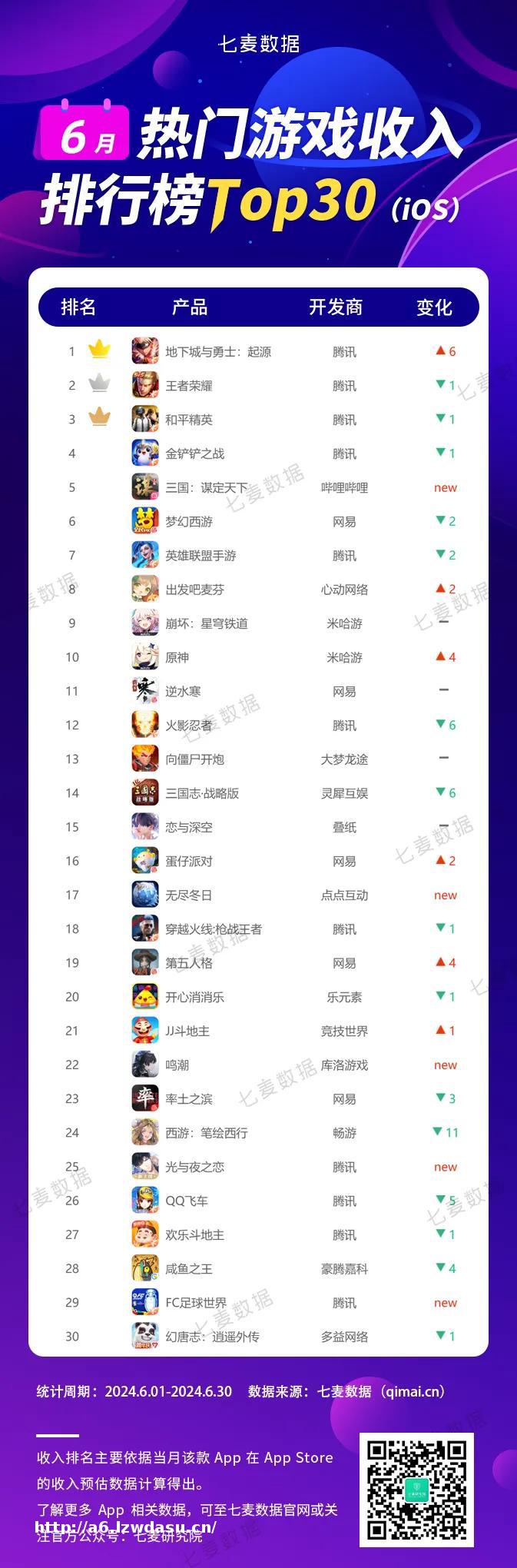 以上就是 6 月的热门游戏榜单 Top30 啦,进入暑期档,各大厂商持续发力,手游圈可谓是“百家**”,多款“新锐手游”一上线就获得了不错的成绩。暑期档还在继续,接下来又会有哪些手游能成功突围呢?我们一起期待~