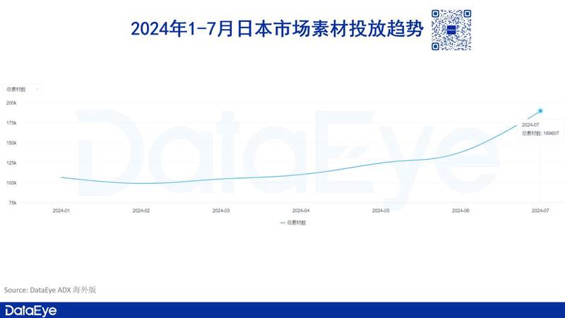 在2024年9月份,韩国市场的游戏素材投放总量达到了18.5万,投放游戏数达到1.2万余款。韩国和**两个市场在9月的投放素材量和游戏数上均十分接近,