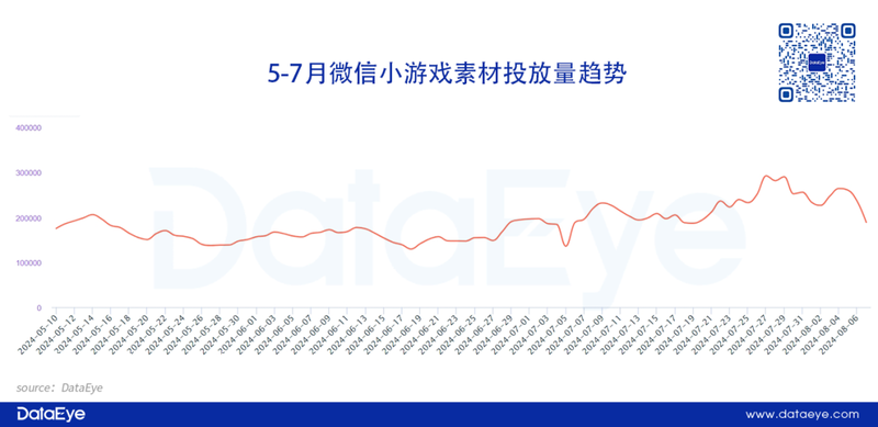 素材量方面,6万,环比4月日均投放量有明显增长,主要是国内进入暑期档营销节点,全面进入买量时代的小游戏愈发侧重核心营销节点,利于产品抢量。