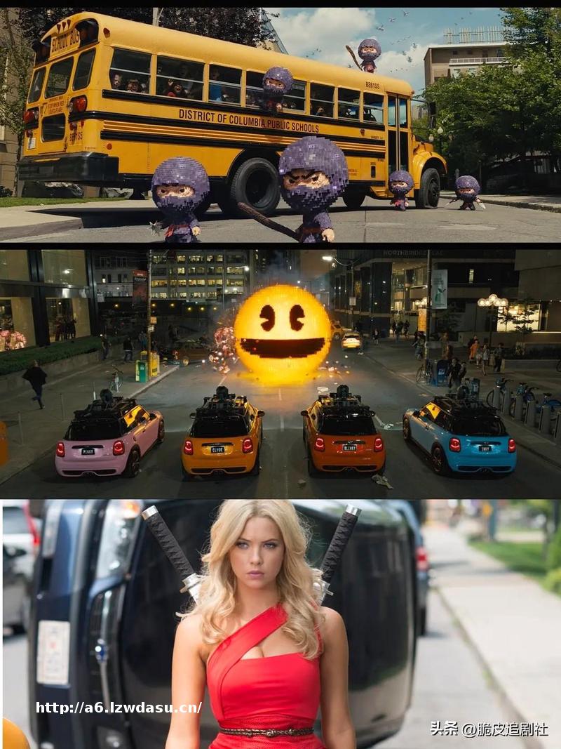 早年的当成宣战信号,变成一群像素怪物来**地球。吃豆人、、太空侵略者这些我们小时候玩过的游戏角,全都变成破坏城市的大反派。