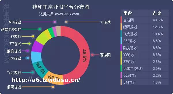 点评:本周《神印王座》大放联运,开服数增涨了12.8%,其在西游网的开服占比已被稀释至半数以下,但开服频率仍旧惊人,高达22服/天。