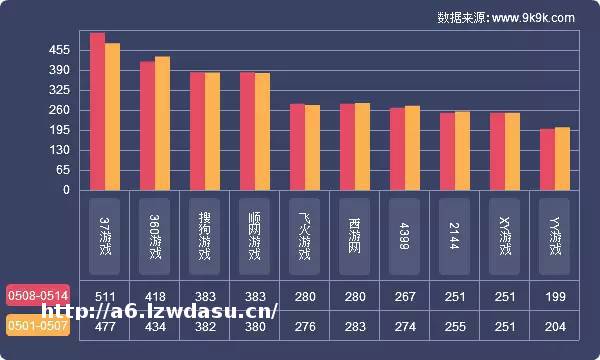 点评:本周网页游戏**商开服排行前三:上海三七互娱、浙江盛和,趣酷科技;上海三七互娱本周开服数增涨11.4%,本周榜单**商共开服2956组,占一线平台开服总数52.5%;其中开服前三**商共开服1482组,占榜单开服总数50.1%,该占比较上周增涨3%。