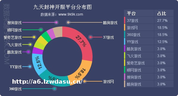 点评:本周《九天封神》开服总数较上周增涨了6.8%,其在37游戏的开服占比仍占近三成,同时在多家平台的开服频率稳定在1服/天。