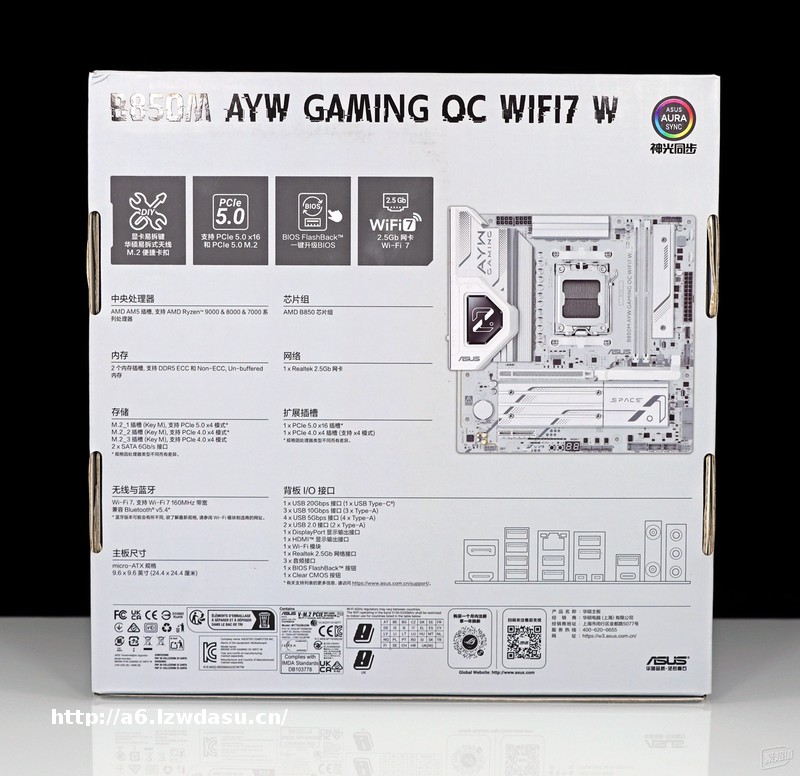 ▲ 主板采用华硕中端超高价比主板——华硕B850M AYW GAMING OC WIFI7 W 哎呦喂,这款主板也是当初高频内存测试的指定主板之一,是为数不多搭配锐龙 9000 系列可以让内存上 DDR5 8400 的主板,也是千元出头 Top 价比以及多面手主板。