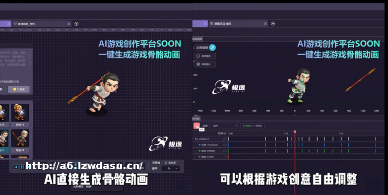 AI游戏创作平台SOON一键生成游戏骨骼动画