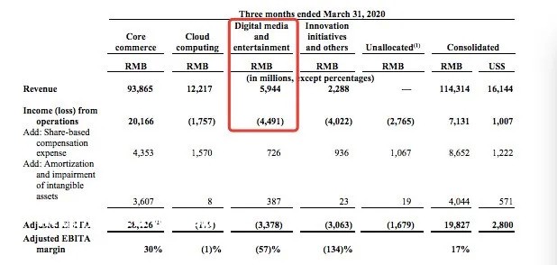前不久,阿里巴巴集团公布了四季度财报(截至2020年7月末),阿里文娱集团所属的数字媒体与**业务,在报告期内实现收入59.44亿元,同比稳步增长5%。优酷日均付费用户同比劲增60%,全年同比增长50%,但依然处在亏损状态,四季度运营亏损44.91亿元。