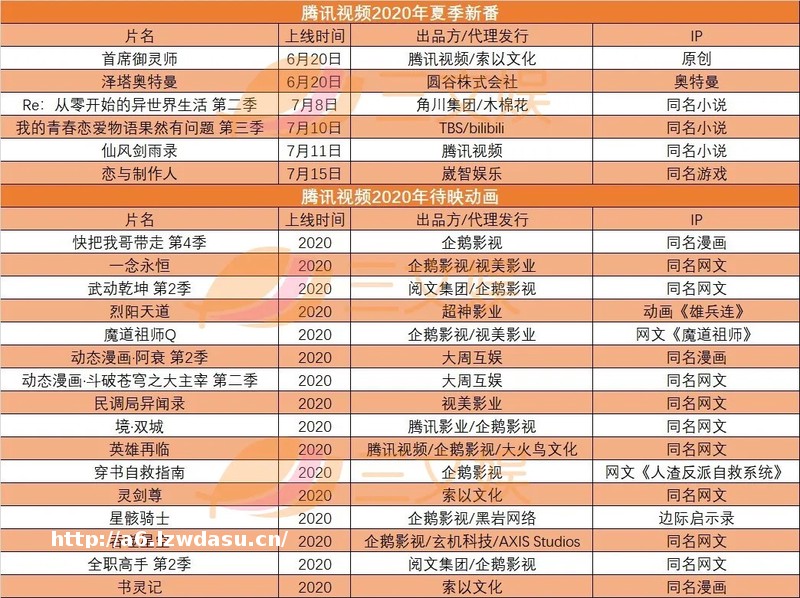 本周,腾讯视频公布了夏季新番导视,将有5部新作开播,具体情况如下图所示: