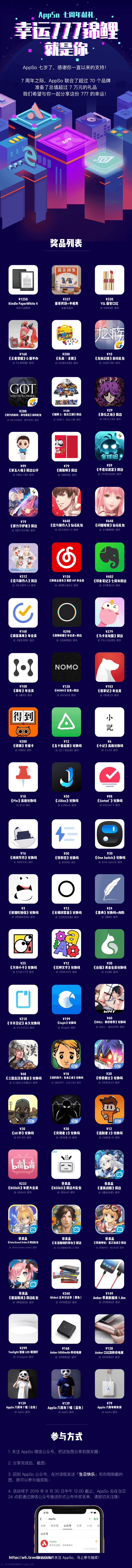 7 周年之际,AppSo 联合了超过 70 个品牌,准备了总值超过 7 万元的礼品,