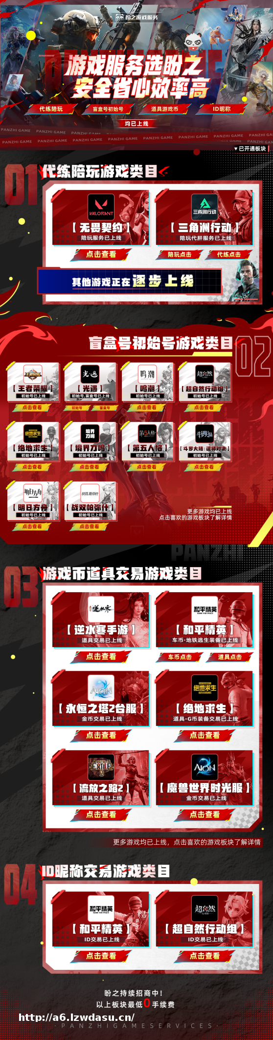 1.新业务概述:盼之代练陪玩、盲盒号初始号、道具游戏币、ID昵称均已上线,盼之努力为玩家提供更多优质服务,为更多玩家虚拟财产**安全保驾护航!