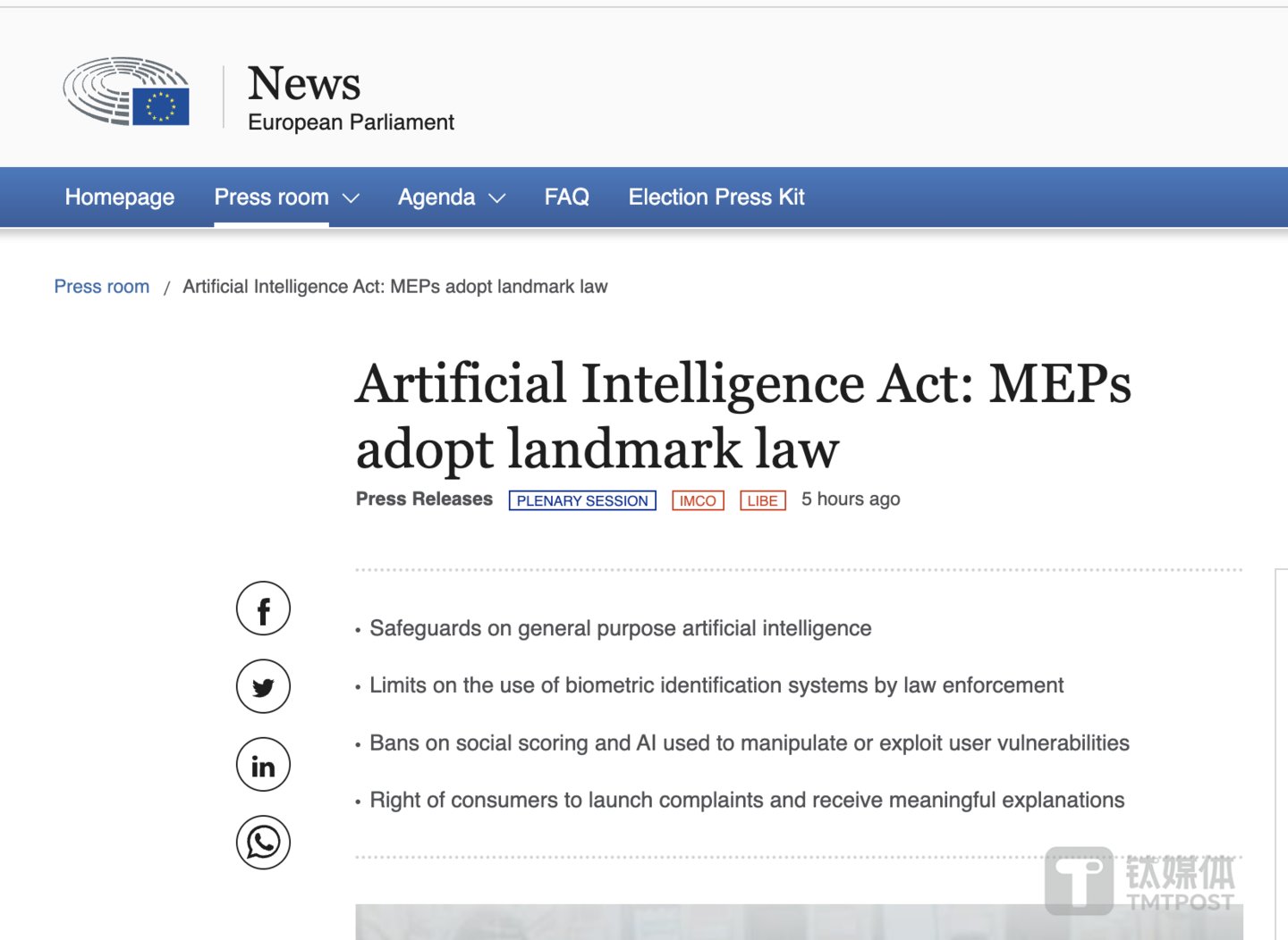 3、全球首部全面 AI 法规获批