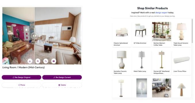美国主流家居电商平台Wayfair推出了一款免费虚拟房间重新设计器Decorify。当用户上传房间的照片、选择想要的视觉风格、输入要装修的房间类型(目前仅支持客厅)后,它采用生成式AI展示用户想要的房间的重新装修版本。用户可以选择房间中的某个单品,该网站可以在计算机或手机上运行。