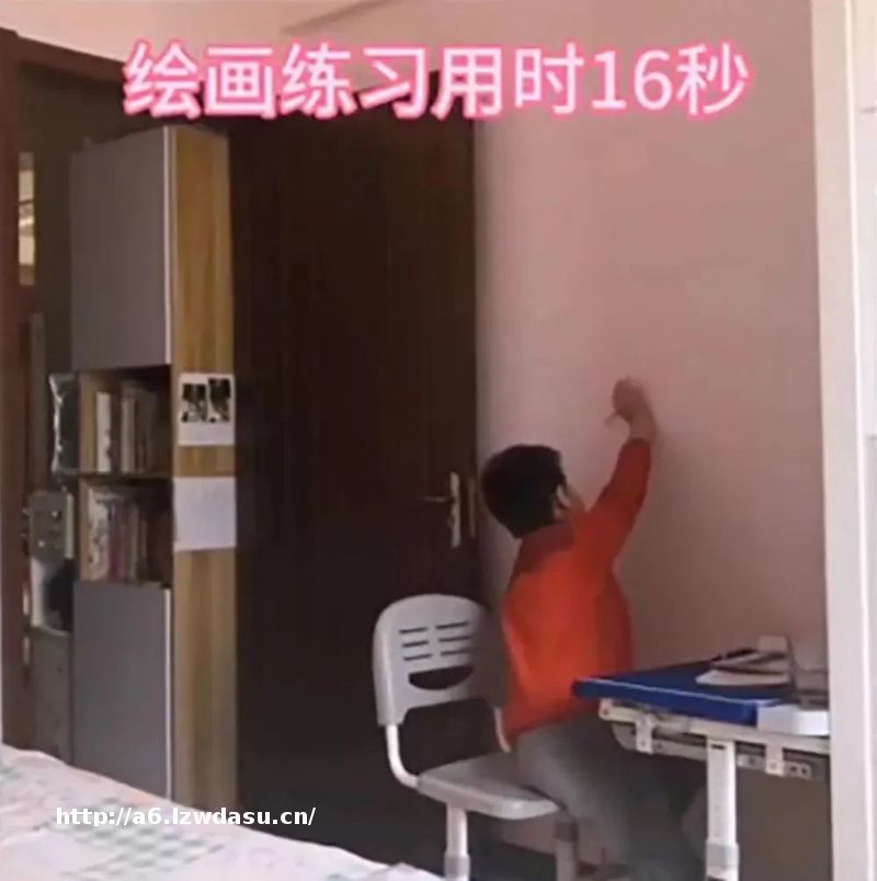 感觉敲墙壁都比写作业有趣多了。 接下来,孩子继续回到书桌,写了51秒的作业。 再然后,扭身用手指在墙上画了一会儿画,持续了16秒。