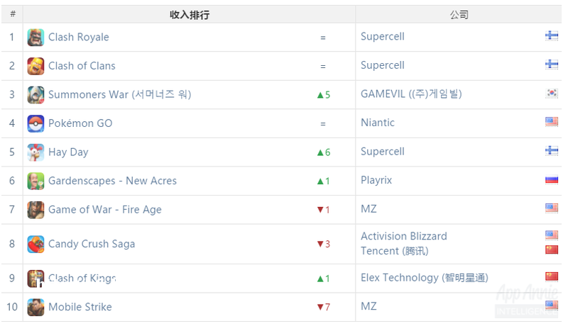 中国游戏市场已经开始增速甩开第2名了,第3名的**市场仅相当于中国腾讯的收入规模。但是**依然是全球ARPU值**的市场,这点从手游收入便可见一斑:《怪物弹珠》这款产品长期排在全球iOS收入榜首位,直到今年5月份《王者荣耀》才从其手中拿到了冠军宝座,而《怪物弹珠》的绝大部门收入均来自**市场,《王者荣耀》收入则多了**、泰国、韩国等市场作出的贡献。当然**市场头部产品的强势也意味着该市场马太效应非常严重,热门产品收入能够轻松中国和美国市场产品,但是长尾流量却没有太大的价值。这种相当不健康的收入结构也将会阻碍**游戏市场规模的进一步增长。