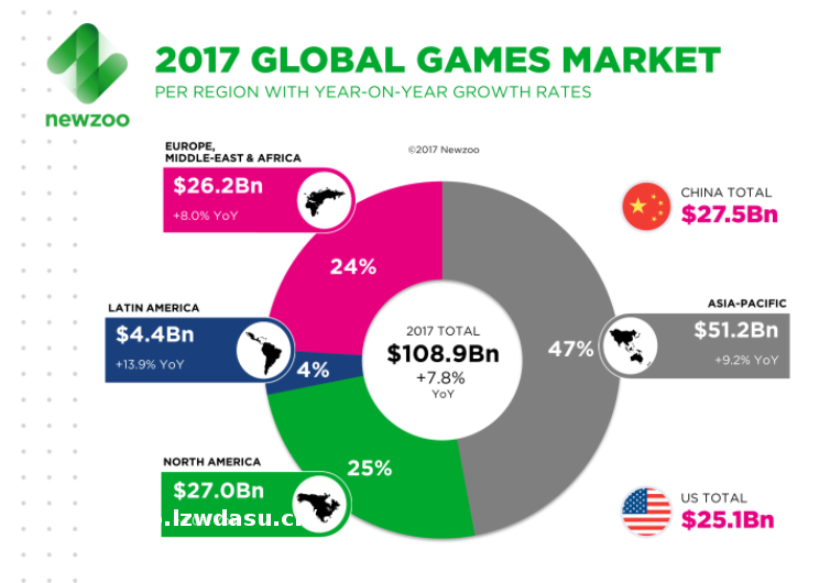 由于中国市场巨大,这也意味着除去腾讯和网易之外,其余厂商还有百亿量级的市场空间。