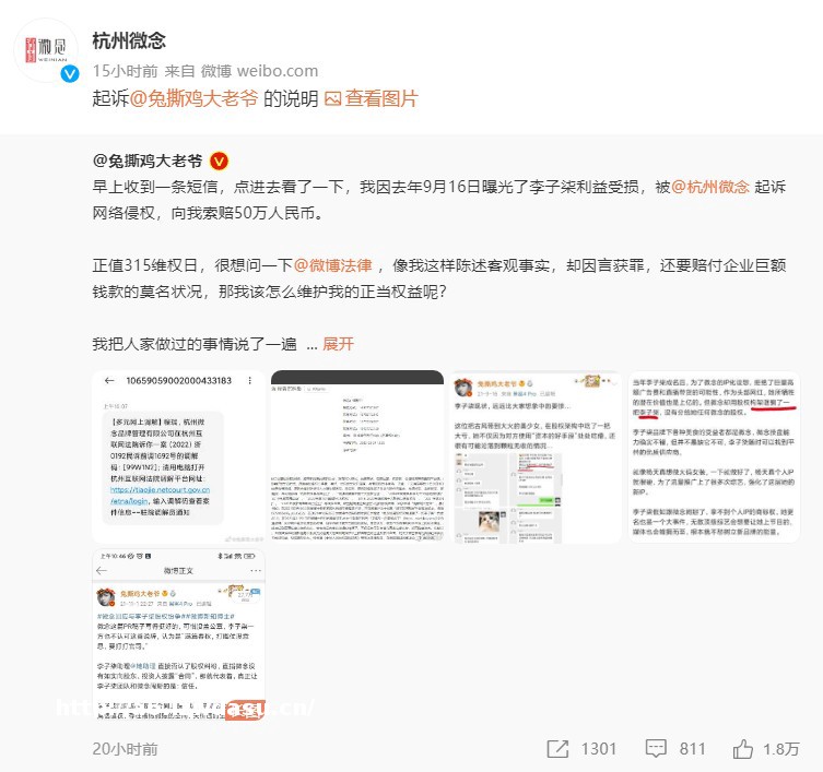 为李子柒发声大V被索赔50万,微念回应:由司法定夺
