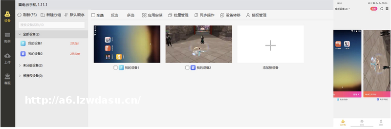 而雷电云在这方面就有特别的设计。如果用户的云手机数量小于 5,雷电云会用大屏更清晰地展示;如果大于 5,自动转为小卡片模式,还能自由调整卡片宫格的布*。如果在电脑上,则批量操作更方便,开上更多台云手机,这比其它云手机更人*化。
